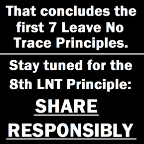 Part of leaving no trace is examining how our actions might impact others and minimizing those impacts. Does the music from your Bluetooth speaker enhance the experience for others on the trail? How about your frolicking pet running up to others? What about writing your initials on a rock or tree? We should all strive to minimize our impact and be respectful of the rights of others to peacefully enjoy our public lands.